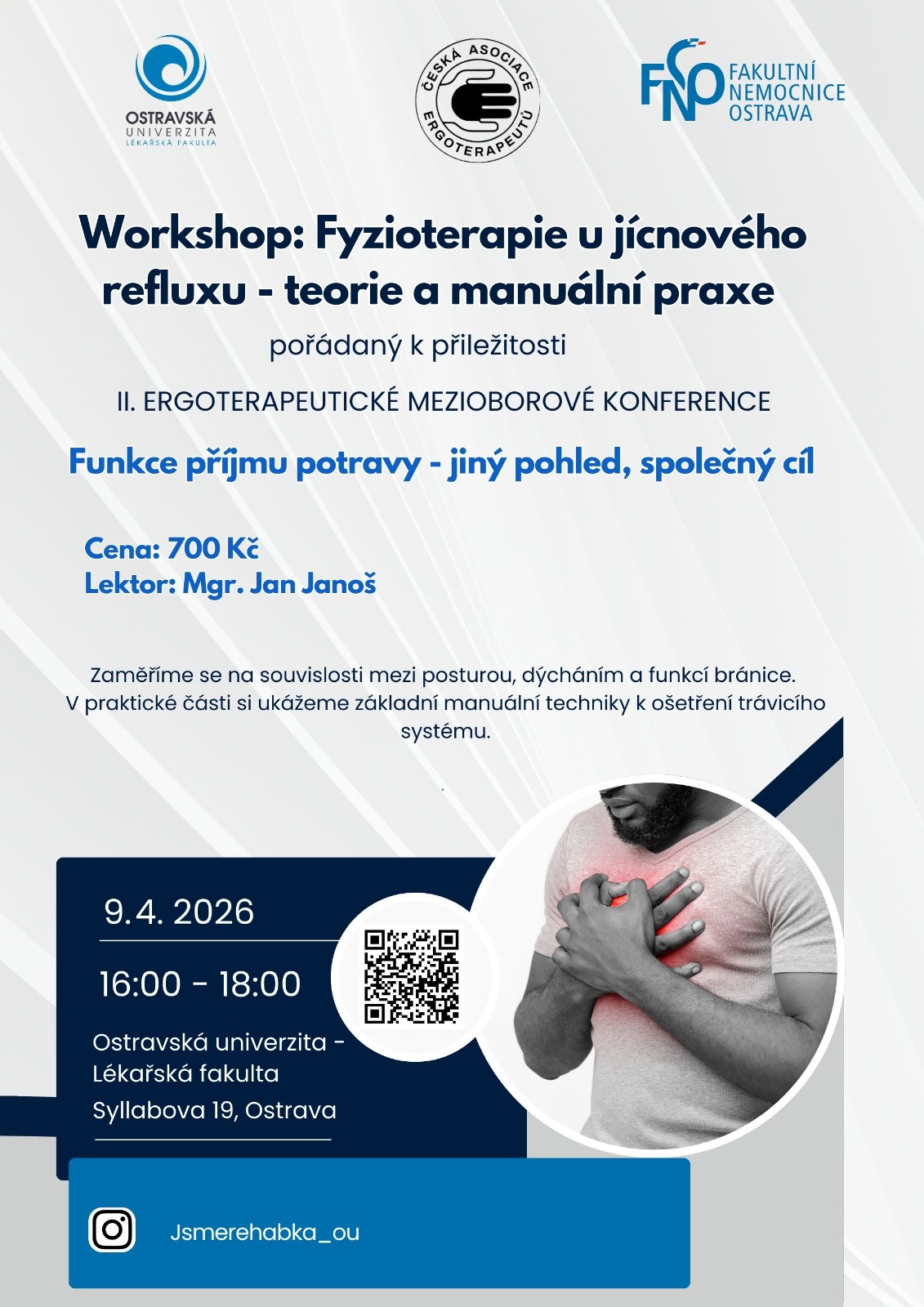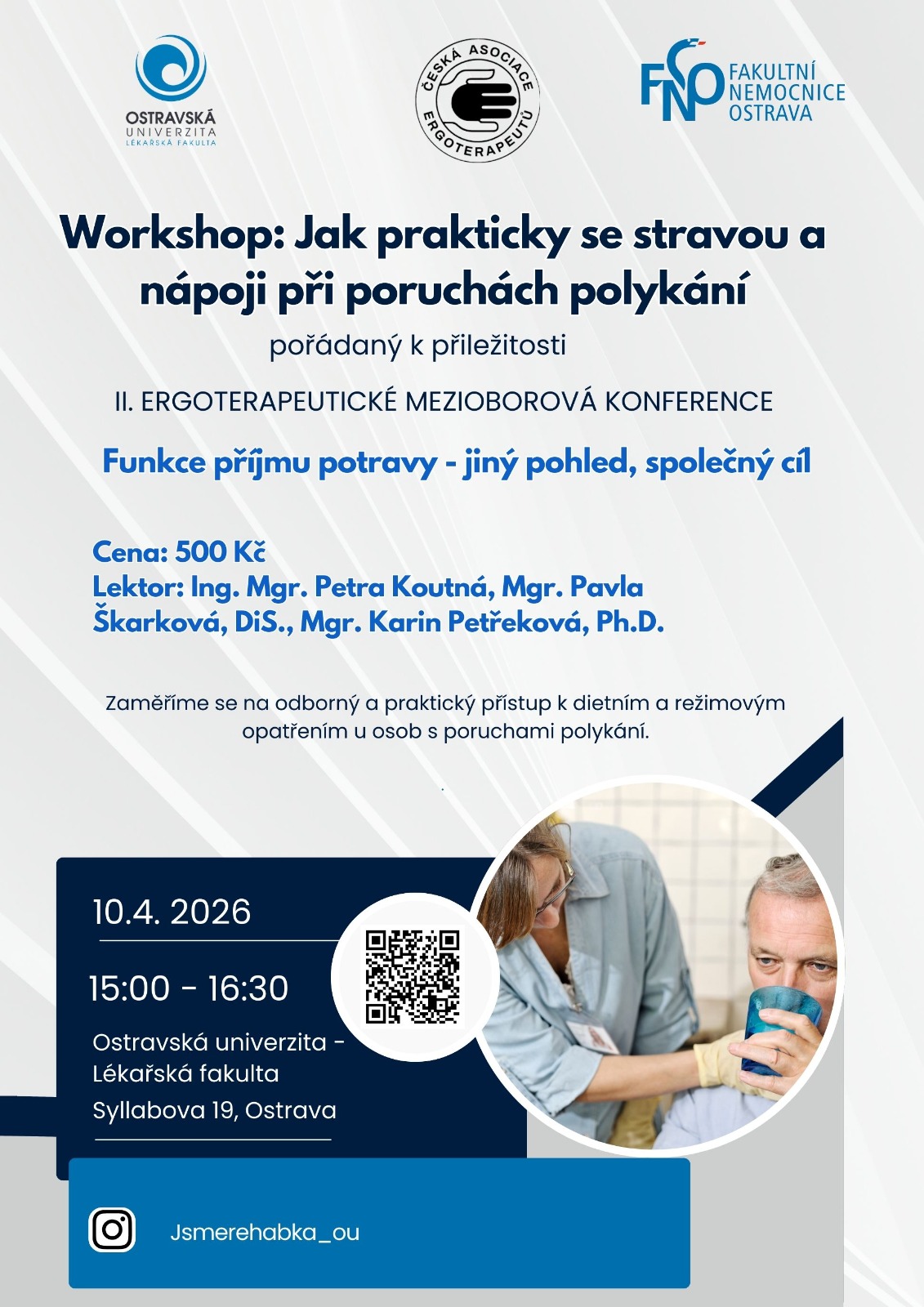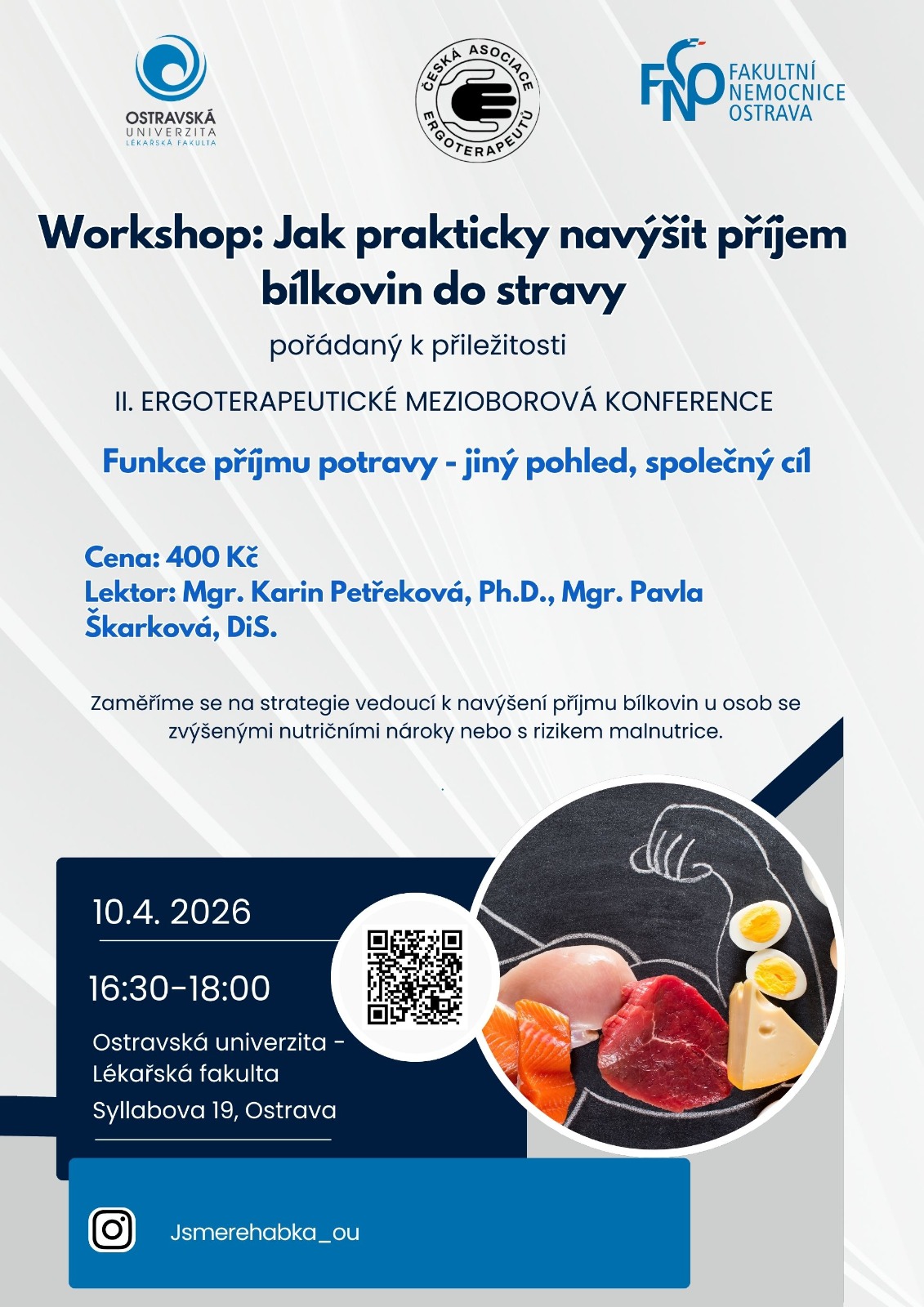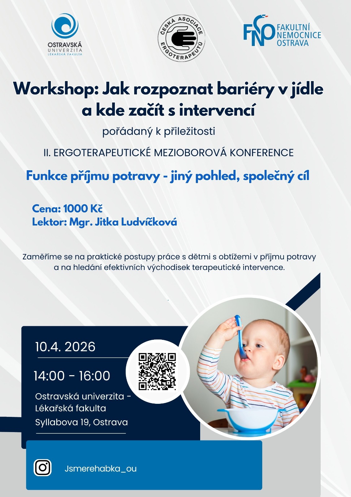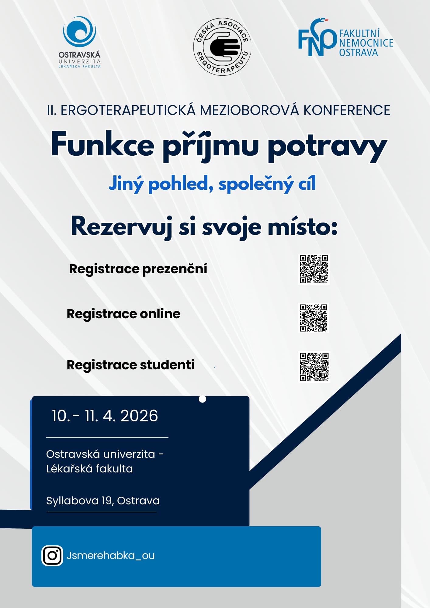 dovolujeme si Vás tímto pozvat na 2. ergoterapeutickou mezioborovou konferenci „Funkce příjmu potravy – jiný pohled, společný cíl“, která se uskuteční v dubnu 2026 v Ostravě.